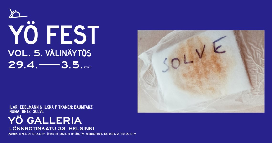 Näyttelykokonaisuus esittelee Numa Hirtzin osallistavan, haavoittuvuutta tutkivan runoinstallaation solve (2025) sekä Ilari Edelmannin ja Ilkka Pitkäsen uuden teoksen Baumtanz (2025). Lisäksi näyttelyssä on esillä Edelmannin ja Pitkäsen aikaisempia yhteisteoksia, kuten musikaalinen videoteos Kein Schlaf (2012) ja dokumentaarinen yhden otoksen teos Jenny (2015).