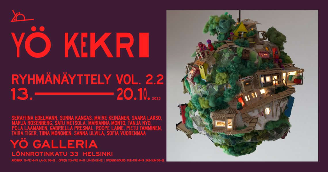 Taiteilijat: Serafiina Edelmann, Sunna Kangas, Maire Keinänen, Saara Lakso, Marja Rosenberg, Satu Metsola, Marianne Monto, Tanja Nyo, Pola Laamanen, Gabriella Presnal, Roope Laine, Misa Saraste, Pietu Tamminen, Taira Tiger, Tiina Mononen, Sanna Ulvila, Sofia Vuorenmaa